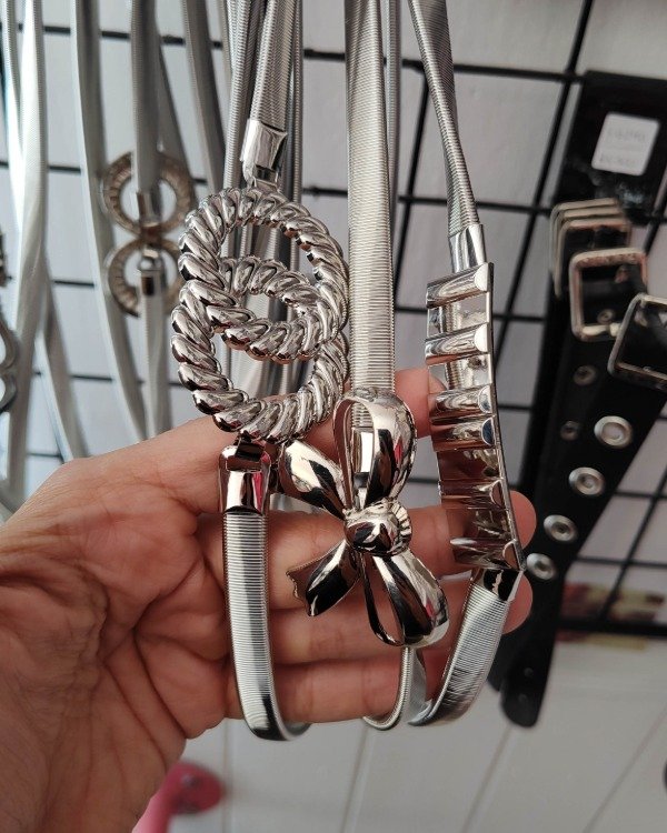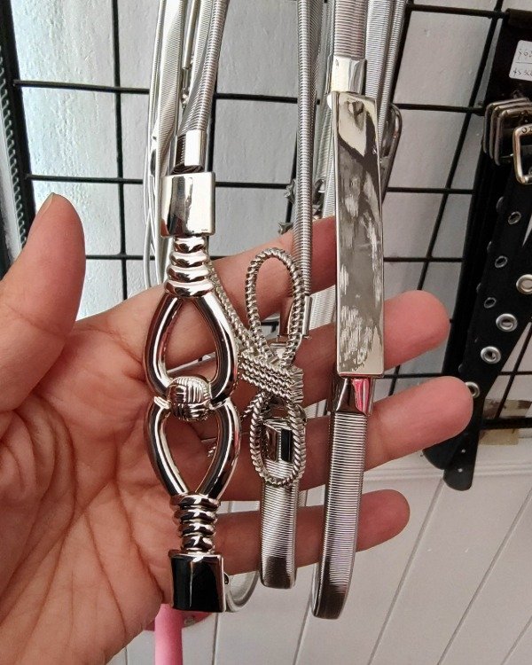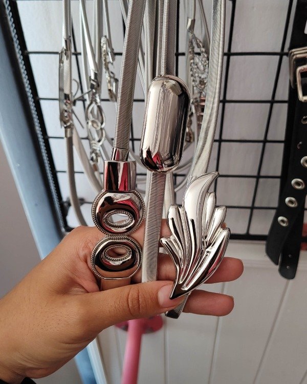 Cintos metálicos con hebillas de diseño. Cada pieza es un statement: brillos, fuerza y actitud para marcar la diferencia en tu look.