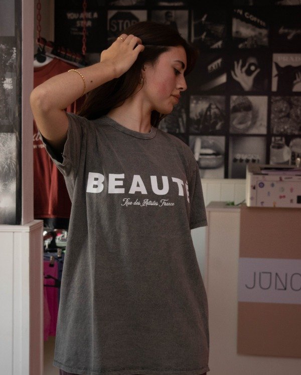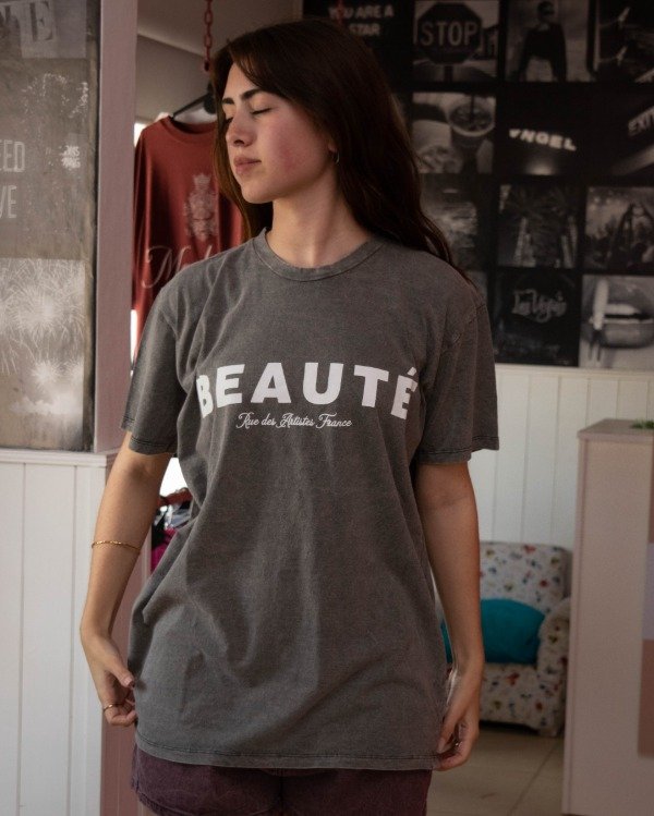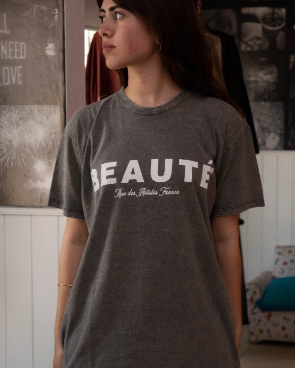Sencillez con un toque francés. Esta remera de algodón gris tiene un diseño minimalista. Su corte holgado y la tela con efecto lavado la hacen ideal para un look casual y sin esfuerzo.