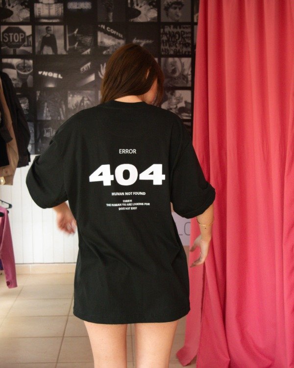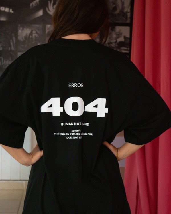 Estampa trasera con la icónica frase “ERROR 404 – Human not found”, ideal para quienes aman la estética digital y alternativa